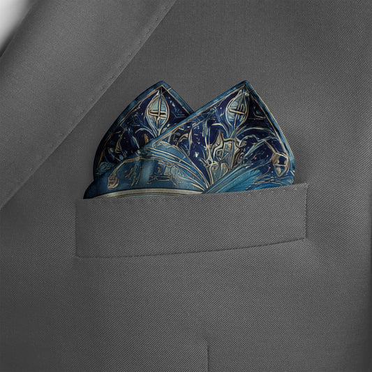 Genuine Silk Peacock and Gold Art Nouveau Pocket Square