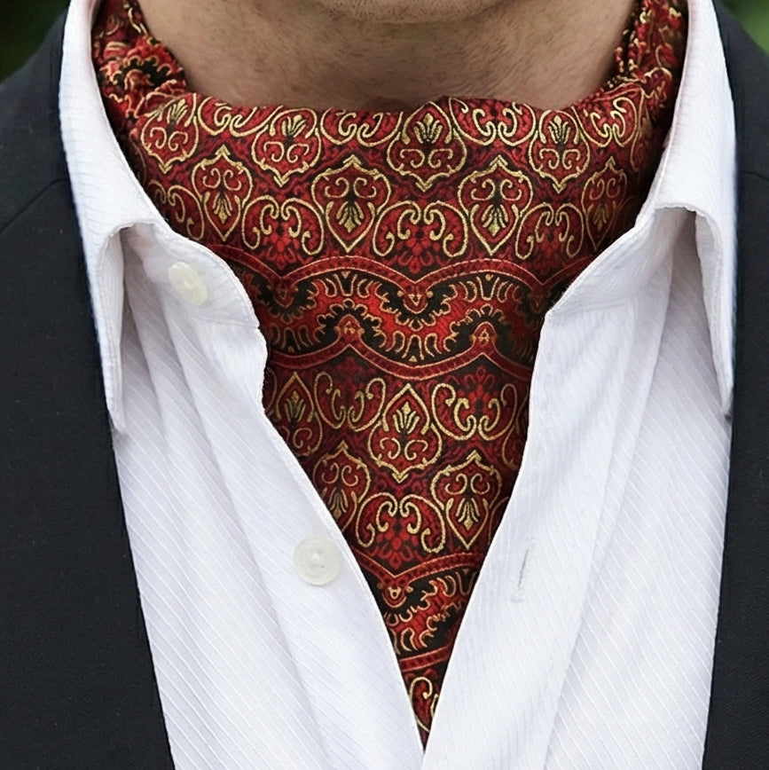 Rot mit goldenem Damast-Design Ascot Krawatte