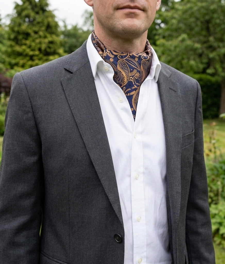 Dark Blue with Gold Plume Paisley Design Ascot