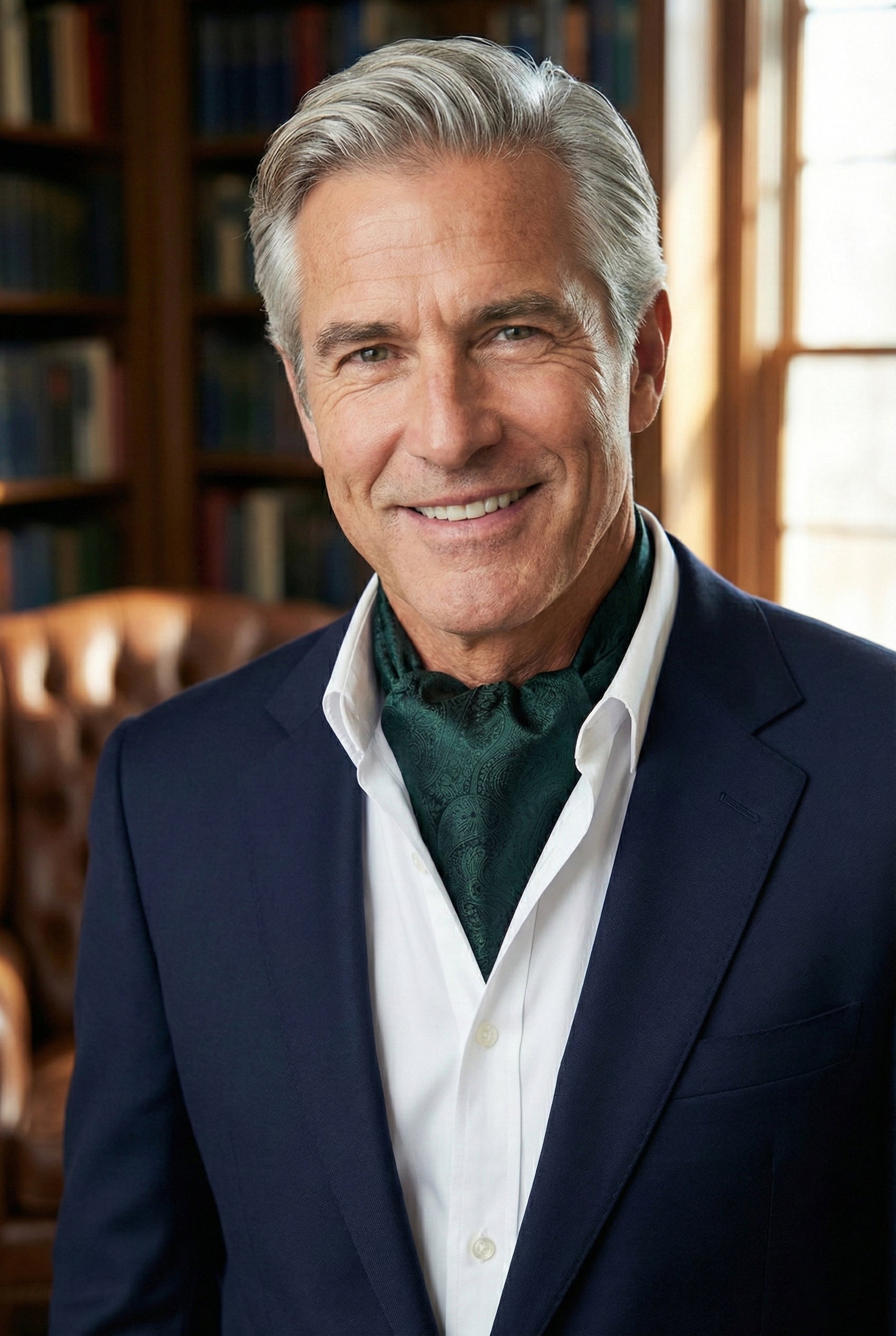 Elevate your attire with this dark green embossed paisley ascot, a striking accessory that perfectly balances tradition and modern sophistication. Crafted from premium microfibre with a soft, silk-like sheen, this ascot features an intricately woven jacquard paisley pattern, adding luxurious texture and a subtle play of light across its rich dark green surface. Worn under an open-collared shirt, it introduces a sense of refined, slightly rakish elegance-ideal for weddings, evening gatherings, or stylish daytime events. The deep green hue brings an earthy yet regal touch, pairing beautifully with navy, charcoal, brown, or lighter beige blazers for a sophisticated contrast. Soft and comfortable around the neck, the ascot is generously cut to create full, graceful folds that stay neatly in place throughout the day. Whether you're dressing for a garden party, a race meet, or simply wish to add a dash of unique personality to your ensemble, this dark green paisley ascot is a standout piece that speaks of confident style and timeless charm. A must-have for the modern gentleman who appreciates classic accessories with rich, contemporary colour.